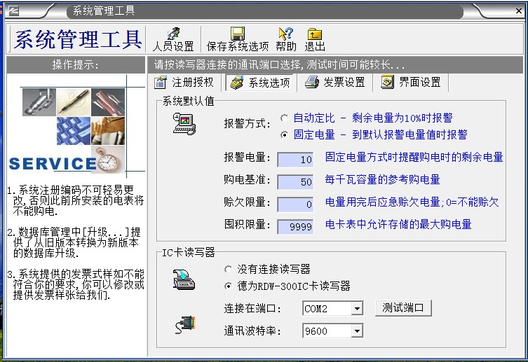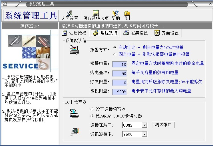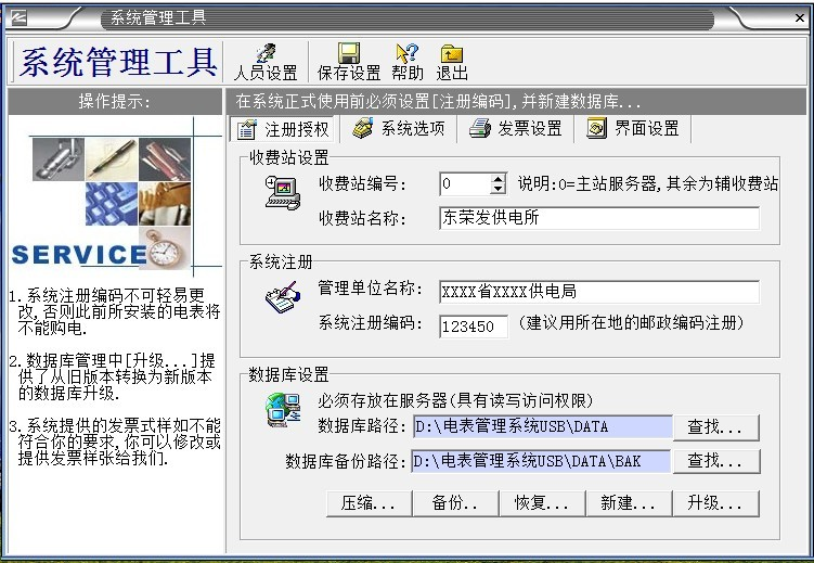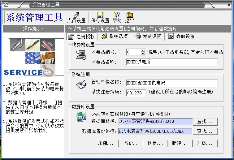 2、“系統數據”必須備份,如果沒有數據備份的話,系統第2次重裝的時候輸入原來第一次系統安裝設置的“系統注冊編碼”,導入備份的數據庫,才能使原來安裝的電表正常充值使用。