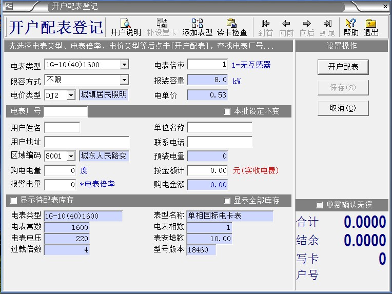 鼠標左鍵:,鼠標左鍵:“開戶配表登記”,出現以下對話框: