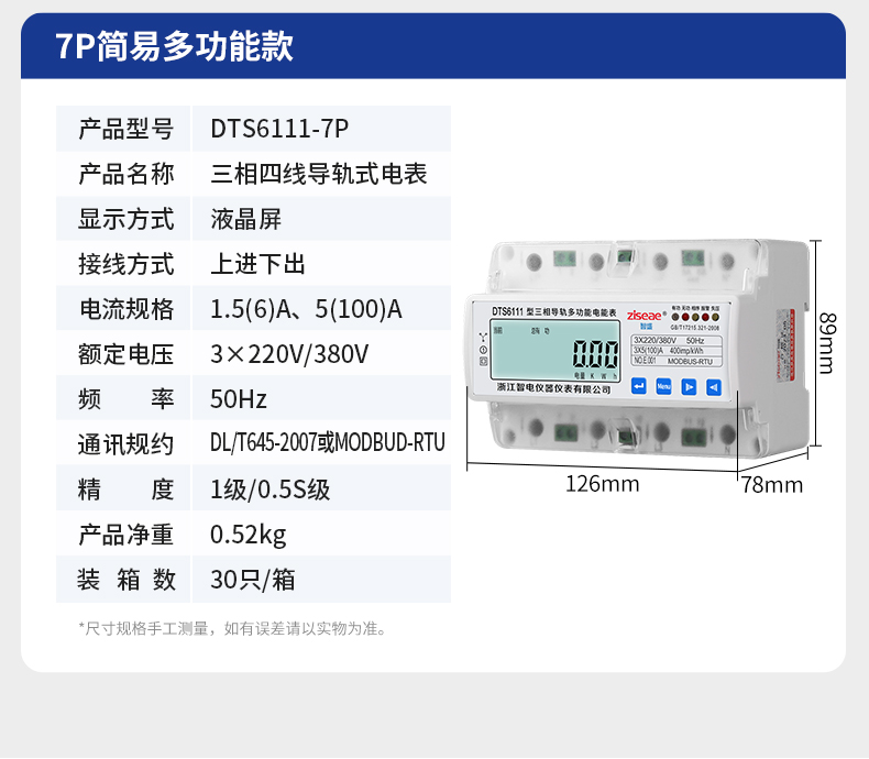 DTS6111、DSS6111型三相導軌式簡易多功能電能表(7P)