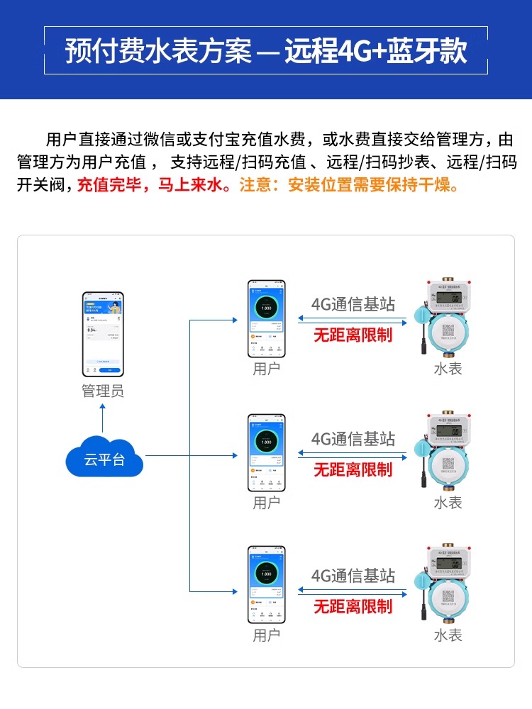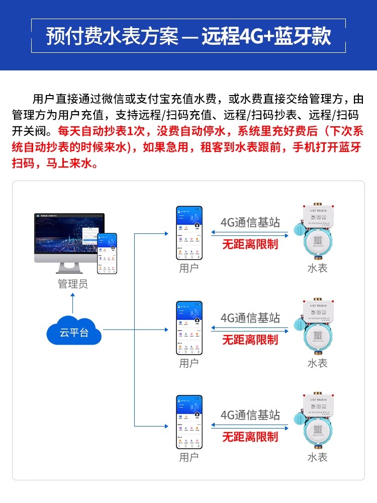 4G+藍牙遠程預(yù)付費水表