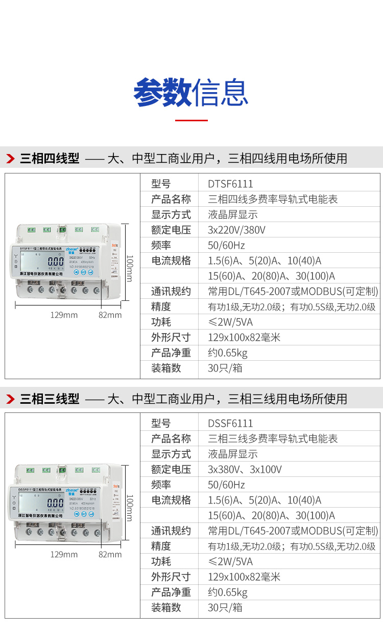 訂購產品: DTSF6111三相導軌式多費率電能表(分時段電表)RS485-2007智能電表